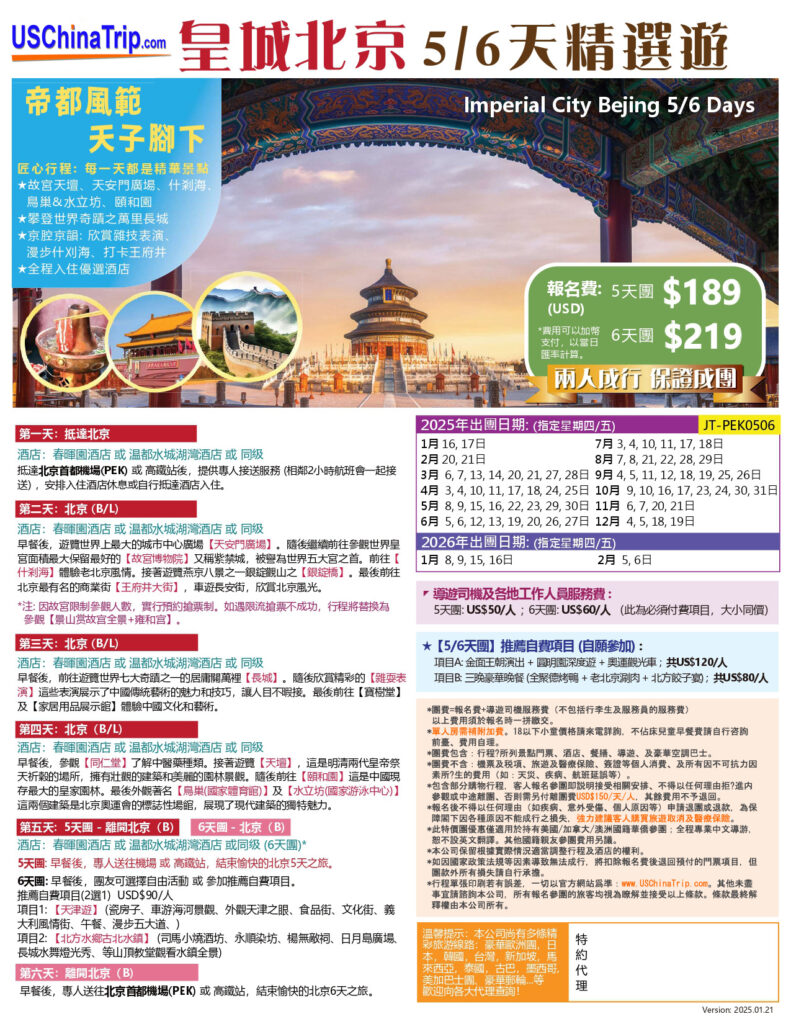 • 故宮天壇、天安門廣場、什剎海、鳥巢&水立坊、頤和園、攀登世界奇蹟之萬里長城